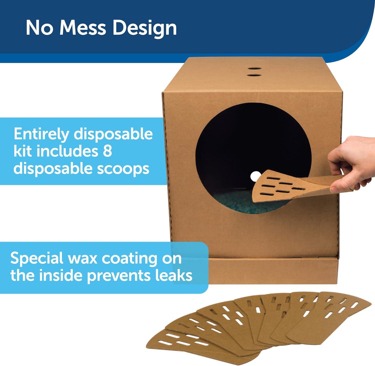 The PetSafe Disposable Litter Box is made of durable corrugated cardboard. The compact litter box easily pops up and folds back down for travel convenience. The box comes with a bag of crystal litter which absorbs urine and dries solid waste for 5x better odor control than clumping clay litters. The protective coating on the box protects against leaks while the box nests snuggly in the lid for extra protection. Whether youre moving or taking your pet on vacation, this litter box is a convenient potty solution for a pet on the move. PetSafe brand is here to help you and your pet live happy together.