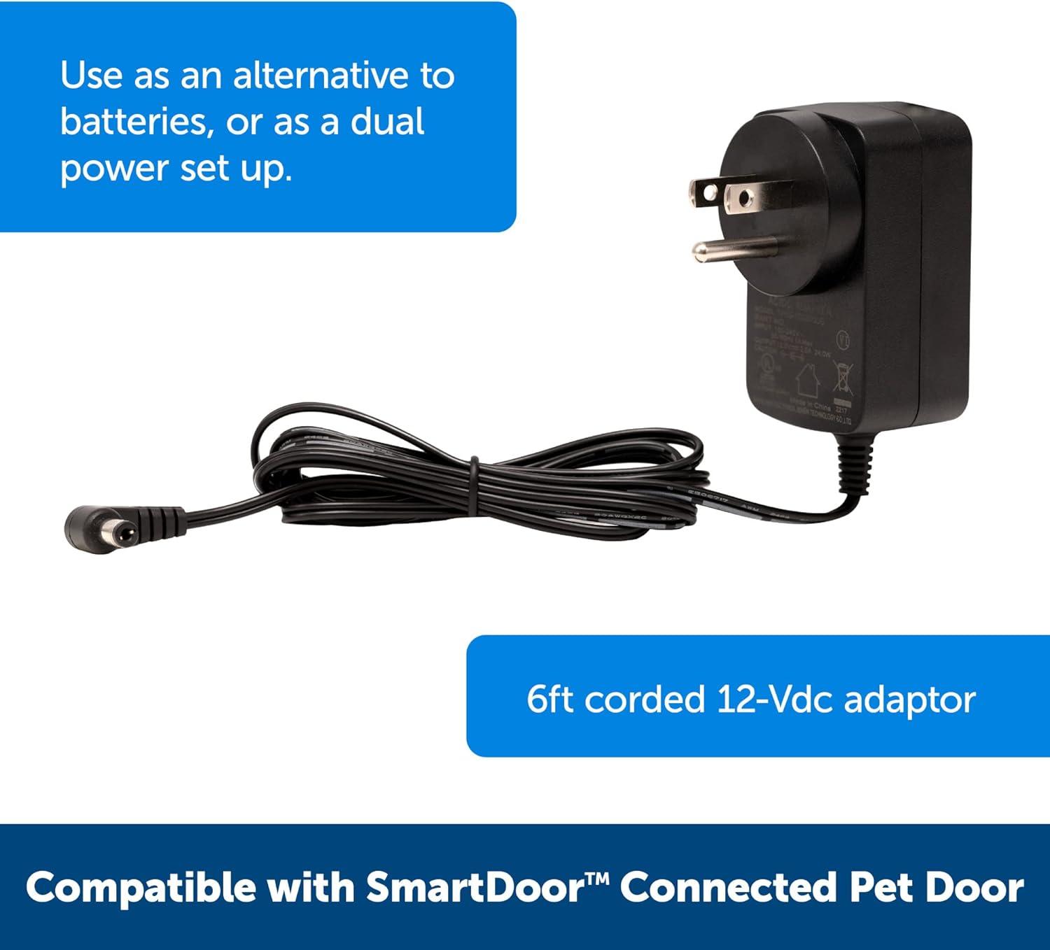 PetSafe SmartDoor Connected Pet Door for Cats and Dogs Tunnel Extension for Thick Doors and Walls, Large, ZAC19-17243(SmartDoor Power Adapter)